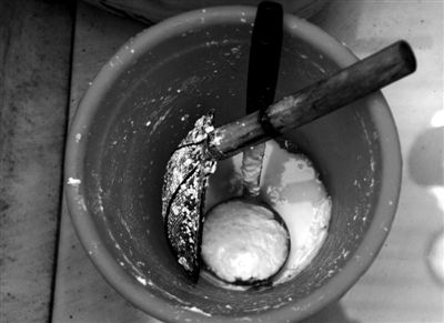 車間里的水桶,制作冰棍所需的配料在這個(gè)桶里攪拌(尹亞飛 攝)