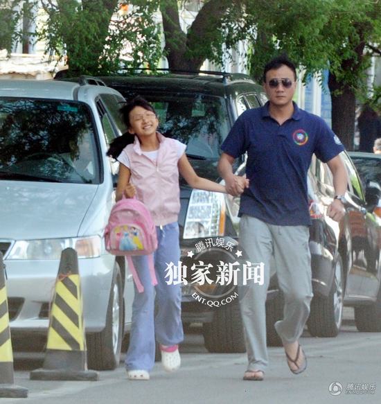 胡軍陪漂亮女兒上補(bǔ)習(xí)班 父女馬路嬉戲溫馨(組圖)
