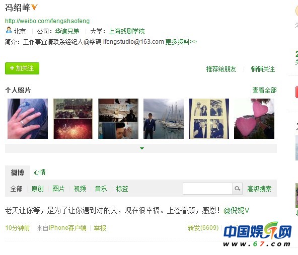 馮紹峰被爆料與倪妮熱戀,兩人一起逛街買衣服照片被拍。今日(5月24日)13點(diǎn)45分,馮紹峰在微博上承認(rèn)與倪妮熱戀,表示現(xiàn)在很幸福,感恩上蒼眷顧。馮紹峰微博原文:老天讓你等,是為了讓你遇到對(duì)的人,現(xiàn)在很幸福。上蒼眷顧,感恩!