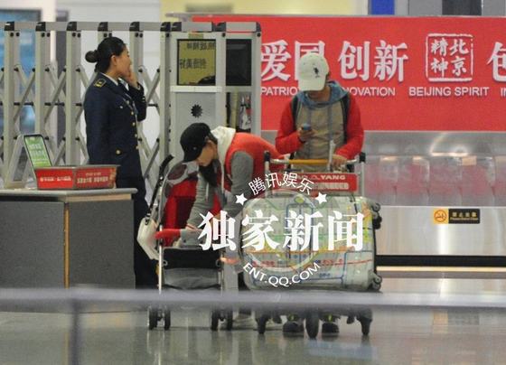 王寶強一家出行自推行李 兒子可愛妻子變土(組圖)