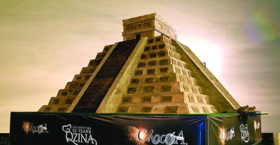 制造者打算在2012年12月21日這天“摧毀”這尊巧克力金字塔。 據(jù)外媒26日報道,日前,美國著名巧克力和糕點制造商Qzina制作了一座巧克力金字塔,刷新了世界最大巧克力雕像的吉尼斯紀錄。 今年是Qzina糕點有限公司成立30周年,為慶祝這一特殊日子,該公司制作了這座重達18239磅(約合8273千克)的巧克力金字塔,它比此前世界最大巧克力的吉尼斯紀錄保持者還重7500磅(約合3 這座巨型巧克力金字塔以一座真實的瑪雅金字塔為模型,按照1:30的比例縮小建造,塔高6英尺(約合1.8米),僅底部邊長就有10英尺(約合3.04米)。 由于巧克力金字塔無法像真的金字塔一樣長期保存,Qzina計劃在2012年12月21日,也就是瑪雅日歷中世界末日的這一天把這尊巧克力金字塔“摧毀”。 |