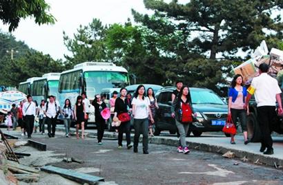 嶗山景區(qū)南線車(chē)輛頂牛擁堵之極