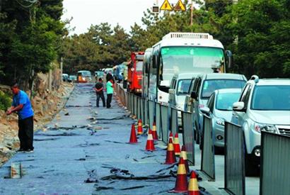 ????嶗山景區(qū)南線自2月15日起至6月30日實(shí)施道路通信線路入地改造,由于施工占用道路,讓原本可供對(duì)向通行雙車(chē)道變成了單車(chē)道。白天,有交通協(xié)管員在單車(chē)道兩端輪流放行車(chē)輛,維持秩序。但下午下班以后,經(jīng)常出現(xiàn)單車(chē)道車(chē)輛“頂?!钡那闆r,造成長(zhǎng)時(shí)間的路堵。28日,記者從埡口經(jīng)南線出山,用了將近兩個(gè)小時(shí)才到流清河。嶗山風(fēng)景區(qū)管理局工作人員昨天提醒說(shuō),施工期間,游客進(jìn)出嶗山最好繞行北線王哥