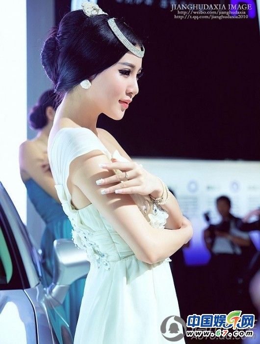 2012華中車展車模真空擠胸 尺度不輸干露露(組圖)