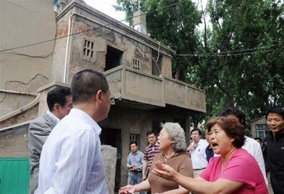 工作人員隨后來到秦大爺所說的樓下鄰居家,66歲的咸女士在這里已住了幾十年?!皫啄昵熬徒拥轿7客ㄖ?,住在這里擔(dān)驚受怕?!毕膛空f,自己希望政府能夠拆遷,讓自己住上安全的房子。在隨后的走訪中,不少居民得知有區(qū)領(lǐng)導(dǎo)來實(shí)地考察,紛紛來反映自己的住房情況?!耙坏奖┯晏鞖猓游瘯?huì)就會(huì)勸我們搬出來避避,可我們心里真不是滋味?!币幻忻裾f。