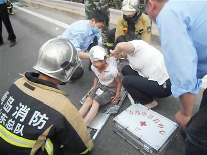 ????“求求你們快救救我女兒,她還這么小,可不能有事啊……”記者在現(xiàn)場見到一名30多歲的男子,他的額頭上仍然有鮮血流出,將他的臉頰和胸前的衣服染得血跡斑斑,但他根本顧不上讓醫(yī)生幫他包扎,而是焦急地盯著扭曲變形的駕駛室。王先生告訴記者,消防隊(duì)員趕到現(xiàn)場后,撬開了駕駛室的車門,先將福特車的司機(jī)救了出來,他的女兒坐在副駕駛座位上,已經(jīng)被困15分鐘了,不知道情況怎么樣。