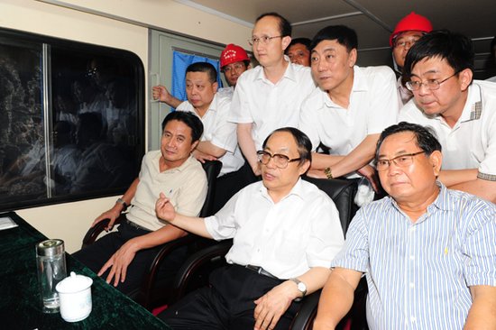 資料圖:劉志遠(yuǎn)(后排中)陪同劉志軍考察海南鐵路項(xiàng)目。