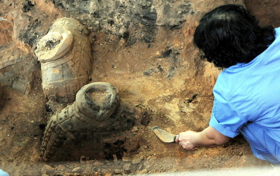 秦兵馬俑考古現(xiàn)場(chǎng)探秘 現(xiàn)項(xiàng)羽放火焚燒痕跡(組圖)