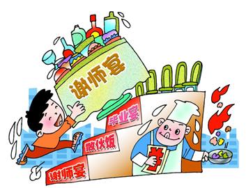 ????記者在采訪時(shí)發(fā)現(xiàn),對(duì)于“謝師宴”,一些老師并不排斥,當(dāng)然也不乏有人覺得沒有必要,還有個(gè)別老師認(rèn)為是負(fù)擔(dān)?!捌鋵?shí)誰也不缺這頓飯,但這是學(xué)生和家長(zhǎng)的一片心意,作為老師也該欣然接受?!鼻鄭u二中的一位老師告訴記者,近幾年社會(huì)上總有一些不同的聲音,說老師借謝師宴 “斂財(cái)”,其實(shí)這是個(gè)誤解,純粹是師生們的一種感情聯(lián)絡(luò),卻被有些人曲解。這名老師說,老師辛苦三年教學(xué)生,不僅僅是本職工作的付出,更多的也是一種感情的注入,學(xué)生們請(qǐng)老師吃個(gè)飯表達(dá)謝意,無可厚非,而實(shí)際上很多老師覺得赴宴是一種負(fù)擔(dān),只是難以駁家長(zhǎng)和學(xué)生的面子。不過接到學(xué)生和家長(zhǎng)邀請(qǐng),老師們還是很高興的,他們更希望的是多名學(xué)生和家長(zhǎng)大范圍地聚會(huì),不用學(xué)生家長(zhǎng)破費(fèi),老師也省去了趕場(chǎng)的負(fù)擔(dān)。