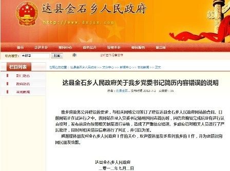 四川達(dá)縣金石鄉(xiāng)政府隨后就此事在官網(wǎng)發(fā)布消息對(duì)此進(jìn)行說(shuō)明。說(shuō)明中提到,應(yīng)政務(wù)公開(kāi)建設(shè)的要求,該鄉(xiāng)與相關(guān)網(wǎng)絡(luò)公司簽訂了建設(shè)達(dá)縣金石鄉(xiāng)人民政府網(wǎng)站的合同。目前網(wǎng)站正在試運(yùn)行之中。該網(wǎng)站在錄入黨委書(shū)記楊明國(guó)簡(jiǎn)歷時(shí),因信息編輯完成后沒(méi)有進(jìn)行認(rèn)真校對(duì),發(fā)布前沒(méi)有按照相關(guān)制度進(jìn)行審核,造成了嚴(yán)重信息錯(cuò)誤。鄉(xiāng)政府已對(duì)相關(guān)人員進(jìn)行了嚴(yán)厲批評(píng),同時(shí)對(duì)相關(guān)錯(cuò)誤信息進(jìn)行了糾正,并引以為鑒。