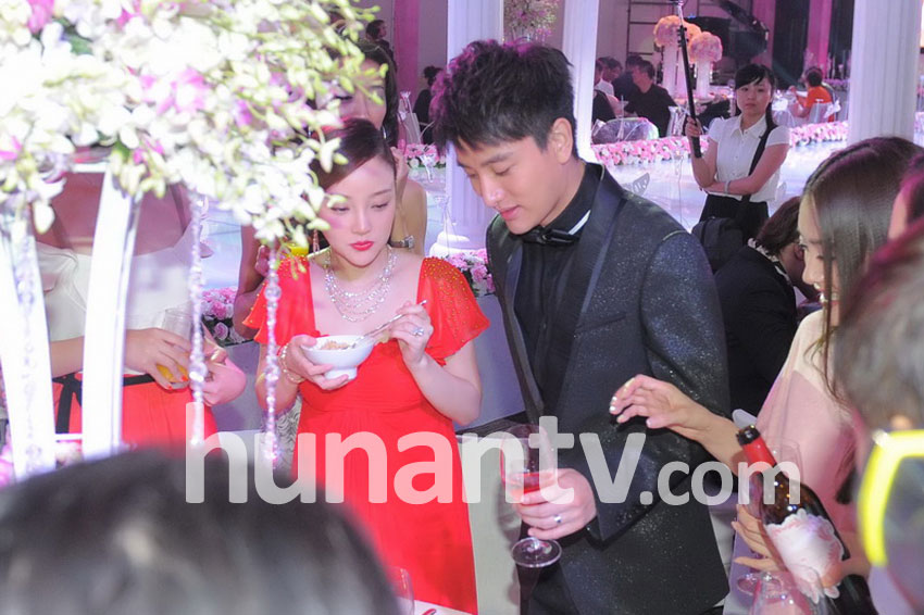 李小璐寬松紅裙突顯孕相 賈乃亮頻頻敬酒舉杯豪飲(圖)