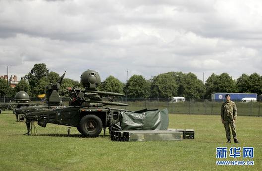 7月12日起,英國軍方開始在倫敦奧運會場館周邊安裝地對空導彈,以應對倫敦奧運會可能突發(fā)的安全問題。這是軍方安置在倫敦布萊克希思科門的地對空導彈(7月13日攝)。