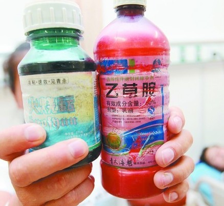 小靜其實(shí)喝過兩種除草劑農(nóng)藥,一種名叫“火燒耘”,含有20%的百草枯水劑藥,還有一種是乙草胺。當(dāng)時小靜先打開乙草胺喝了一口,由于味道難聞就吐了出來,隨后又打開“火燒耘”,“妹妹說喝了一口,我們也不知道她到底喝了多少。”趙女士說,這兩瓶農(nóng)藥都是舅舅放在家里準(zhǔn)備給莊稼打藥的,小靜雖然說喝的并不多,但這已經(jīng)危急到她的生命了。