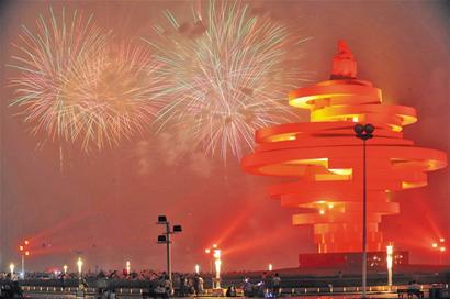 昨晚9時(shí)左右,一團(tuán)團(tuán)絢麗的焰火將夏日的浮山灣渲染得五彩繽紛,激情四射。這場(chǎng)盛大的焰火表演拉開(kāi)了2012中國(guó)青島國(guó)際海洋節(jié)的序幕。從今天開(kāi)始到8月4日,奧帆中心每天都將有豐富多彩的活動(dòng)讓市民和游客來(lái)感受藍(lán)色海洋的文化魅力。