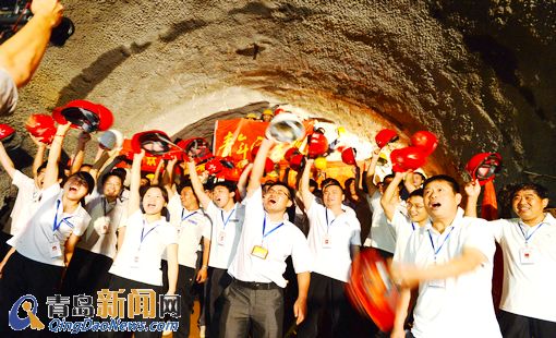 施工者們在貫通點合影留念