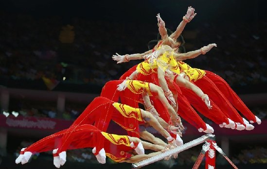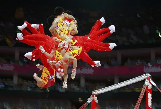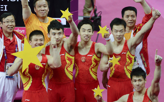 在今晨結(jié)束的2012年倫敦奧運(yùn)會(huì)體操男子團(tuán)體決賽里,由陳一冰、鄒凱、馮喆、張成龍、郭偉陽(yáng)組成的中國(guó)隊(duì)表現(xiàn)出色,以275.997分的總成績(jī)技?jí)喝盒郏粧哳A(yù)選賽的低迷?shī)Z得了本屆奧運(yùn)會(huì)比賽首枚體操金牌。經(jīng)過(guò)最后申訴而成功拿回積分的日本隊(duì)排名第二,東道主英國(guó)超水平發(fā)揮拿到了銅牌……