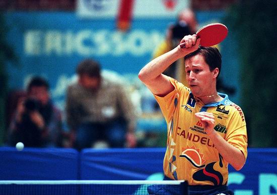 ????被中國(guó)人昵稱(chēng)為“老瓦”的這名瑞典乒壇常青樹(shù),與幾代中國(guó)選手抗衡了20多年,是乒壇無(wú)可爭(zhēng)議的傳奇。上世紀(jì)80-90年代是老瓦的職業(yè)巔峰期。1989年世乒賽,正處于巔峰時(shí)期的瑞典隊(duì)不但在男團(tuán)賽事里5-0擊敗中國(guó)隊(duì)奪冠,在單打賽事里瓦爾德內(nèi)爾也擊敗齋藤清、克蘭帕爾、格魯巴和隊(duì)友佩爾森,拿下了世乒賽冠軍。1990年乒乓球世界杯,在日本千葉,瓦爾德內(nèi)爾延續(xù)著自己世界頂級(jí)的發(fā)揮,半決賽擊敗陳龍燦,決賽擊敗衛(wèi)冕冠軍馬文革,神勇奪取男單冠軍。1992年奧運(yùn)會(huì),瓦爾德內(nèi)爾更是大發(fā)神威,半決賽擊敗金擇洙,決賽擊敗蓋廷再度奪取奧運(yùn)會(huì)冠軍,這也是瑞典隊(duì)在奧運(yùn)會(huì)歷史上的第一枚乒乓球冠軍。