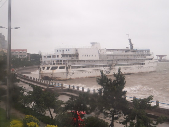 今天早上6時(shí),網(wǎng)友@枕琴聽雨臥禪房發(fā)布微博說,八大峽海碼頭的中苑號被風(fēng)吹斷纜繩,已經(jīng)非常靠近岸邊。
