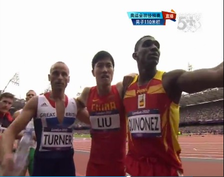 ????各就位劉翔走到起跑器前,表情很平靜。發(fā)令槍響后,劉翔在過第一個(gè)欄時(shí),左腳根本沒有過欄就摔倒,倒在跑道上無法繼續(xù)比賽。在跑道上停頓了一會(huì)兒后,劉翔一瘸一拐地跳出比賽場(chǎng),右腳已經(jīng)無法著地,但隨后他可能意識(shí)到這將是他最后一次站在跑道上,即便不能跑過終點(diǎn),也要再經(jīng)過一次跑道,因此他又一瘸一拐地跳回賽場(chǎng),從邊道一跳一跳地跳到最后一個(gè)欄架,親吻了一下欄架,隨后又跳到終點(diǎn),“完成了”自己的比賽,全場(chǎng)觀眾給予劉翔最熱烈的掌聲以鼓勵(lì)。