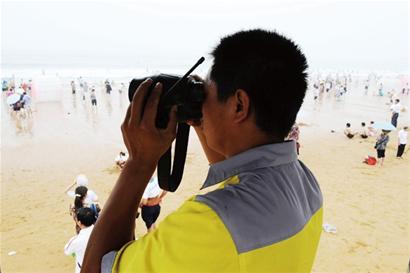 前晚,兩名來(lái)自河北的游客在開(kāi)發(fā)區(qū)金沙灘海水浴場(chǎng)游泳時(shí)溺水,現(xiàn)場(chǎng)救生員和民警聯(lián)手救起1人,另外1人被海浪卷走。當(dāng)晚11時(shí)30分,該游客被發(fā)現(xiàn)后經(jīng)確認(rèn)已溺水身亡。而僅僅兩天前,一名外地小伙也在金沙灘溺水身亡上演了悲劇。昨日,記者探訪發(fā)現(xiàn),受“達(dá)維”“??钡扰_(tái)風(fēng)的影響,金沙灘海水浴場(chǎng)已連續(xù)11天發(fā)出 “封閉令”,但仍難阻擋游客下海游玩。