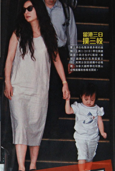 ,原來(lái)趙薇一直為愛(ài)女到港讀書(shū)鋪路。上周二(7月31日),八卦周刊發(fā)現(xiàn)趙薇秘密帶小四月來(lái)香港。據(jù)悉,趙薇在香港逗留3天,四次出入學(xué)校,在好姐妹王菲的牽線搭橋下,到香港最貴的九龍?zhí)烈袊?guó)際學(xué)校面試,為愛(ài)女進(jìn)軍名校幼兒園打拼。