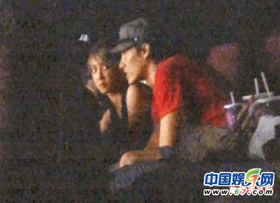 錦榮(右)看電影時(shí)把下巴靠在蔡依林的肩上撒嬌,她嘟嘴賞他白眼。