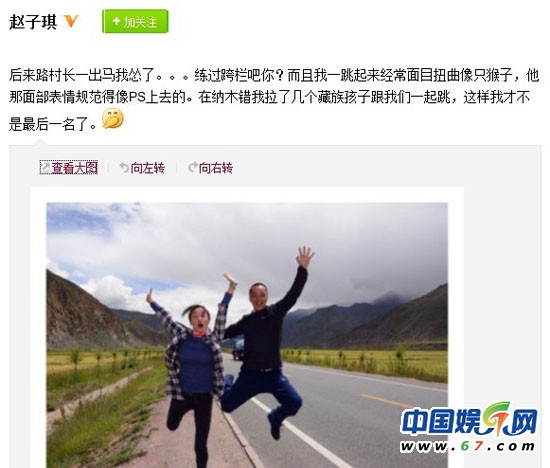 趙子琪路金波同游西藏 曬搞怪賣萌照羨煞網(wǎng)友(圖)