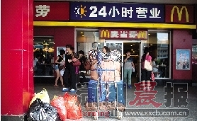 ????記者調(diào)查:4日中午1點,長沙火車站人流如潮。麥當(dāng)勞餐廳里開著冷氣,放著音樂,用餐的人不少,很多顧客都帶著行李。微博中所述老人的“行李”就放在麥當(dāng)勞門口的柱子那兒,好幾個大包和好多個塑料袋,里面都裝著空的礦泉水瓶和一些亂七八糟的東西,散發(fā)著一股異味。