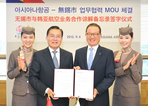 韓亞航空與中國無錫市簽訂業(yè)務合作諒解備忘錄