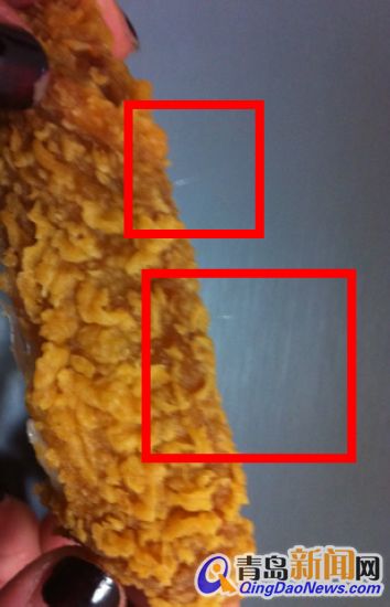 ????說(shuō)起自己吃到“精品雞毛翅”的經(jīng)過(guò),王女士表示十分意外。“那天,我陪朋友去李村辦事,中午餓了就打算先買(mǎi)點(diǎn)東西墊墊,一商議就進(jìn)了李村麥當(dāng)勞向陽(yáng)路店,當(dāng)時(shí)我還被朋友說(shuō)了一通,他說(shuō)我沒(méi)品位,亂吃垃圾食品,我心想偶爾吃一次沒(méi)關(guān)系,就買(mǎi)了兩對(duì)辣翅,一包薯?xiàng)l?!蓖跖空f(shuō)道。