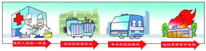 為了確保運(yùn)輸安全,每輛醫(yī)療垃圾運(yùn)輸車(chē)安裝了定位系統(tǒng),在整個(gè)過(guò)程中,衛(wèi)生部要求使用的“醫(yī)療廢物轉(zhuǎn)移聯(lián)單”也是保證醫(yī)療垃圾處理安全的一個(gè)重要手段。五聯(lián)單上主要包括醫(yī)療垃圾產(chǎn)生單位、運(yùn)輸單位、接收單位和數(shù)量這幾項(xiàng),由環(huán)保局、衛(wèi)生局、產(chǎn)生單位、運(yùn)輸單位、接收單位各執(zhí)一聯(lián),這樣做到醫(yī)療垃圾的流向有據(jù)可查。
