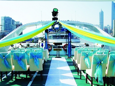 游輪婚禮現(xiàn)場(chǎng)布置。資料圖片