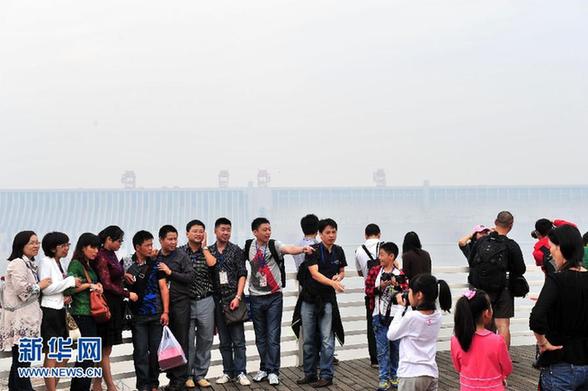 10月3日,游客在三峽大壩前游覽。當(dāng)日是中秋國慶長假的第四天,三峽大壩旅游區(qū)迎來旅游客流高峰,共接待中外游客4.7萬人次,創(chuàng)歷史新高。據(jù)長江三峽旅游公司市場部有關(guān)負(fù)責(zé)人介紹,中秋國慶長假四天來,三峽大壩旅游區(qū)已接待中外游客達(dá)11.5萬人次,整個(gè)長假預(yù)計(jì)游客人數(shù)有望達(dá)20萬人次。新華社發(fā)(王輝富攝)
