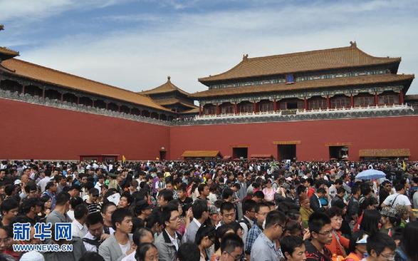 10月3日,故宮午門前聚集了眾多游客。當(dāng)日是中秋國慶長假的第四天,前門大街、故宮博物院等北京熱門旅游景點(diǎn)迎來眾多游客。新華社發(fā)(賀燦鈴攝)