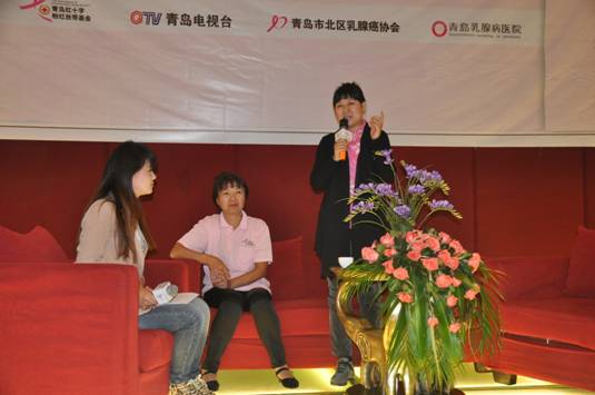 ????上午9時許,北京電視臺編導、《珍愛乳房》的作者、抗癌斗士、青島紅十字粉紅絲帶宣傳大使——葉丹陽,專程來到青島乳癌患者交流會,與島城乳癌患者們面對面交流,分享了抗擊乳癌的經(jīng)驗,同時向廣大市民傳遞著“勇氣——堅信一個沒有乳腺癌的世界”。