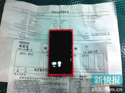 ????9月25日,市民鐘先生在番禺橋東路48號諾基亞(駿和)專賣店選購了一款NOKIA800手機,售價3199元。鐘先生說,當時他向專賣店索要發(fā)票,遭到拒絕,只給了他一張“商品質量保證單”。商品質量保證單上顯示,如果廠家檢測到質量出問題,顧客自購機日起七日內包退,十五日包換,一年保修。