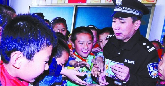 ????正面是課程表,背面是安全防范知識,精美可愛的課程表卡片吸引了不少小學(xué)生。11月5日下午,中韓派出所民警來到了嶗山區(qū)西韓小學(xué),給學(xué)生們上了一堂安全防范課,還專門送來了安全防范課程表?!敖o我一張,我也要……”學(xué)生們圍著民警搶著要課程表。