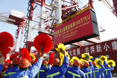 本報訊 11月15日上午10:18,在青島港集裝箱碼頭,隨著馬士基“海陸閃電”輪的一個集裝箱的成功起吊,馬士基航運成為青島港第一個過百萬箱的船公司,這標志著青島港與大船公司戰(zhàn)略合作結(jié)出了豐碩的成果,這不僅在青島港集裝箱發(fā)展史上具有重要的里程碑意義,而且提振了全球港航界的信心。