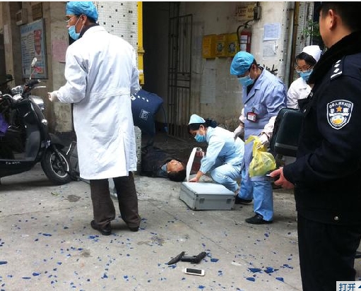 經(jīng)核查,死者何彬系柳州市規(guī)劃局局長;傷者系何彬妻子陳某。圖為死者躺在地上。