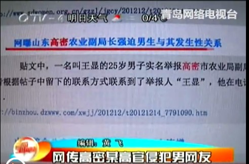 高密1副局長(zhǎng)被舉報(bào)誘奸男網(wǎng)友 曾來青島開房