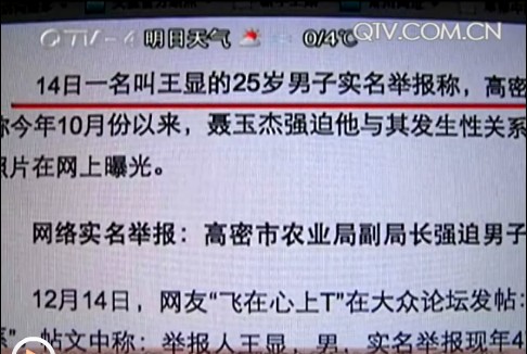 ????最近,一位名叫“飛在心上T”的網(wǎng)友,在大眾論壇發(fā)表了一條名為“實(shí)名舉報(bào)高密市農(nóng)業(yè)局副局長(zhǎng),誘騙男生強(qiáng)迫發(fā)生性關(guān)系”的帖子。貼子中,一個(gè)名叫王顯的25歲男子,實(shí)名舉報(bào)高密市農(nóng)業(yè)局副局長(zhǎng)聶玉杰,多次誘騙他并強(qiáng)迫與他發(fā)生性關(guān)系多達(dá)5次,同時(shí)還威脅他,不許走漏風(fēng)聲,否則就把他的照片在網(wǎng)上曝光。帖文中敘述說,今年7月份,高密市農(nóng)業(yè)局副局長(zhǎng)聶玉杰加了王顯的qq號(hào),之后倆人以普通朋友的身份在網(wǎng)上聊天,十分投機(jī),而聶玉杰更是讓從小沒有父親的王顯,感受到了父親般的溫暖。兩人在網(wǎng)上聊了五個(gè)月后,今年的10月17號(hào),聶玉杰提出見面,兩人約在了濰坊田思瑞國(guó)際大酒店,并開了房間,之后強(qiáng)迫王顯和他發(fā)生性關(guān)系。