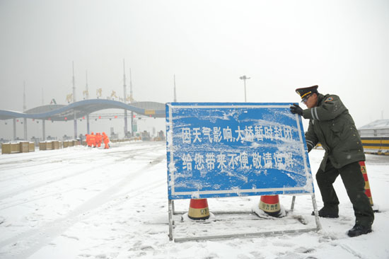 高速路環(huán)衛(wèi)工人正在加緊清理積雪 張力偉攝