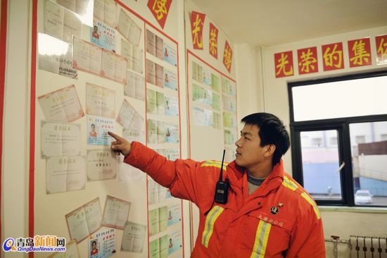 在機(jī)械二隊(duì)榮譽(yù)室里,賈自剛指著自己滿(mǎn)墻的榮譽(yù)證書(shū),非常自豪