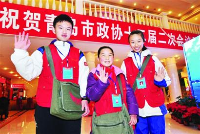 “叔叔阿姨們好!我們是青島晚報(bào)小記者!”昨日下午,市政協(xié)十二屆二次會(huì)議共青團(tuán)、婦聯(lián)、青聯(lián)討論組里出現(xiàn)了幾張活潑的小面孔,他們是來自青島實(shí)驗(yàn)初級(jí)中學(xué)的周韞涵、青島第26中學(xué)的姜闊和青島金門路小學(xué)的辛怡靜三名晚報(bào)小記者,他們的出現(xiàn)給現(xiàn)場(chǎng)的委員們帶來了驚喜。在討論會(huì)上,三名小記者帶著從校園里征集來的“兩會(huì)好聲音”積極發(fā)言,就升學(xué)壓力、校服改良、校園安全、親子關(guān)系等熱點(diǎn)話題與委員們面對(duì)面交流,其中不少建議獲得了委員們的關(guān)注。