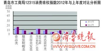 ????工商人員介紹,2012年食品類投訴最多,維權(quán)指數(shù)全年在15上下波動(dòng)。反映的主要問題有:過期、變質(zhì)食品在架銷售現(xiàn)象頻發(fā);個(gè)別食品內(nèi)含有異物;個(gè)別商家涉嫌銷售假冒品牌肉制品及酒類;外包裝標(biāo)識(shí)標(biāo)注不規(guī)范等。其中1月食品類投訴量明顯高于其他月份,主要與春節(jié)期間食品市場(chǎng)比較活躍,食品經(jīng)營(yíng)違法違規(guī)行為有所增多有關(guān)。