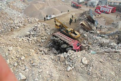 昨日下午2時10分,城陽公安分局民警和消防官兵到達了現(xiàn)場看到,三座沙石堆成的小山中有一個20多米深的坑,一輛紅色自卸車側(cè)翻在坑中,車頭嚴重變形,破碎的風(fēng)擋玻璃散了一地,車斗和車頭連接處已經(jīng)扭曲。工人稱,這輛車是卸沙土的時候從20多米高的地方后翻下來的。民警趴在地面上,透過間隙發(fā)現(xiàn)司機頭朝下腳朝上困在了駕駛室內(nèi),車內(nèi)的方向盤座椅都已變形并死死壓在司機身上,頭部和肩膀處在不停地出血。