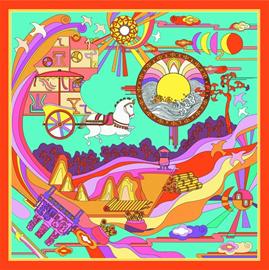 此款方巾從國(guó)粹京劇吸取創(chuàng)意元素,將京劇裝束中的女性頭飾融人中國(guó)傳統(tǒng)圖案中,并用時(shí)尚的紅紫兩色點(diǎn)染,華麗柔美,風(fēng)情萬(wàn)種。