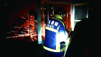 ????“我們接到市民的報警求助后立即趕到現(xiàn)場,發(fā)現(xiàn)房屋的受力結構已經完全改變,隨時可能再次坍塌?!睄魃较来箨犮y川路消防中隊的消防隊員介紹,他們清晨5時27分就趕到了現(xiàn)場,與110民警立即制定救援方案。他們發(fā)現(xiàn)倉庫的大門已經被屋內的磚頭瓦礫堵死,一旦強行破拆,很可能威脅到屋內被困人員的安全。消防隊員將救援的突破口放在了南墻的窗口上,屋主為了防盜,在窗口焊接了食指粗細的鐵柵欄,消防隊員使用無齒鋸小心地切割鐵柵欄,一陣火星四射后,3根鐵柵欄被切斷,救生通道打開,3名消防隊員冒著房屋再次垮塌的危險爬進了屋內。