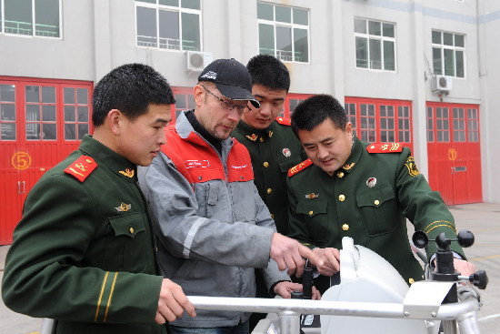 消防官兵與技術(shù)人員交流學(xué)習(xí)