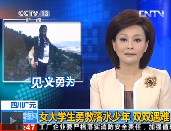 央視報道女大學生救人遇難